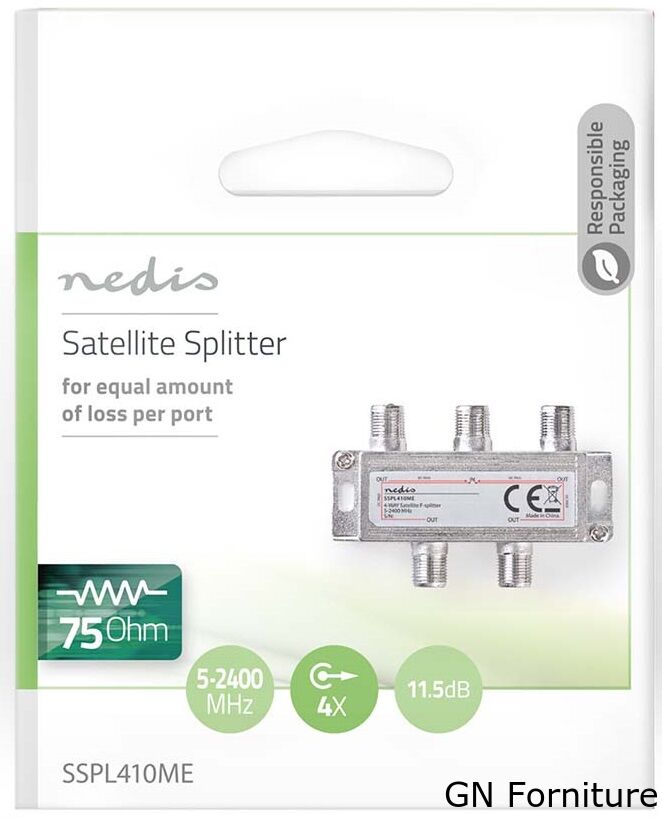 Splitter Satellitare 5-2400 MHz 11.5 dB IN:1/ OUT: 4 75 Ohm