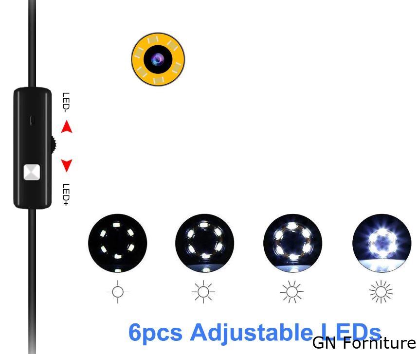 La microcamera endoscopica professionale ha un diametro di 6 mm e 6 LED a luce bianca.