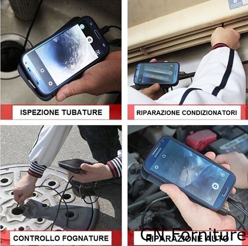 La microtelecamera endoscopica è ideale per registrare, perlustrare in tempo reale e scattare foto direttamente dal proprio Smartphone Android.