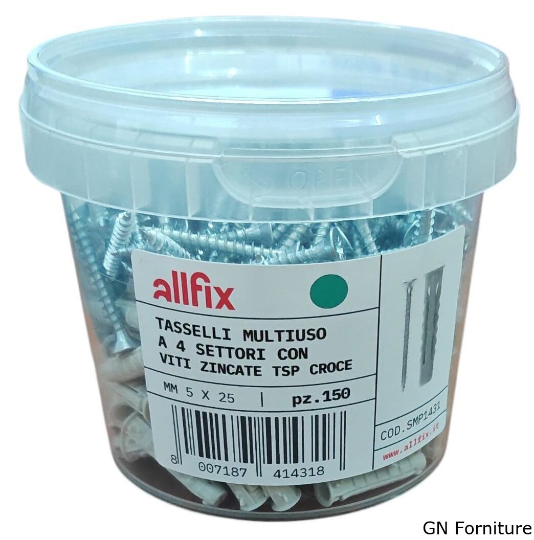 La struttura a 4 settori consente al tassello di espandersi in modo uniforme durante il serraggio della vite, migliorando la presa e contribuendo alla stabilità del fissaggio. Il corpo in nylon garantisce resistenza, elasticità e durata nel tempo, mentre la vite TSP zincata a croce assicura un serraggio pratico e una buona resistenza alla corrosione in normali condizioni di utilizzo.