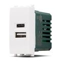 Doppia presa USB USB A - USB tipo C 5V 2.4A compatibile Vimar Plana