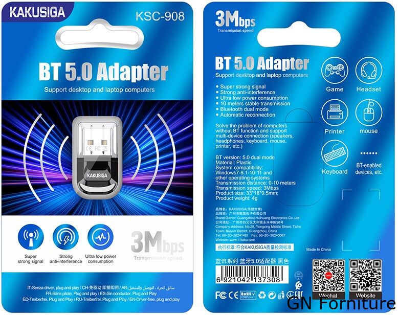 - Risolve il problema del computer che non ha la funzione Bluetooth, supporta connessioni multiple di dispositivi (altoparlanti, cuffie, tastiera e mouse, stampanti, ecc.)