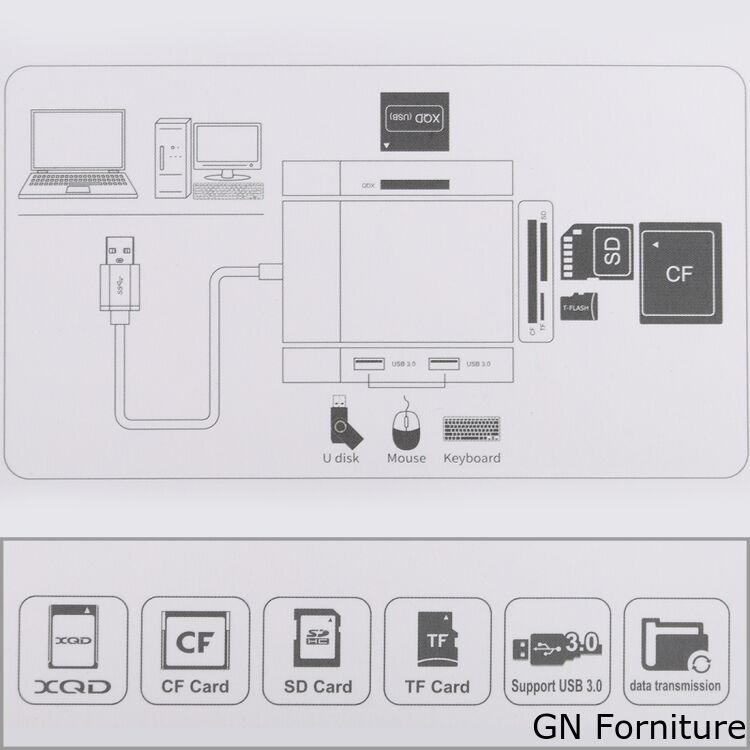 Lettore di schede multifunzione 6 in 1 progettato per garantire una gestione rapida e affidabile dei principali formati di memoria. Integra due porte USB 3.0 aggiuntive e supporta schede XQD, CF, SD e TF, offrendo un’unica soluzione compatta per trasferimenti veloci e collegamenti periferici. La compatibilità con lo standard USB 3.0 assicura elevate velocità di trasmissione dati, mantenendo allo stesso tempo la retrocompatibilità con USB 2.0 e 1.1.