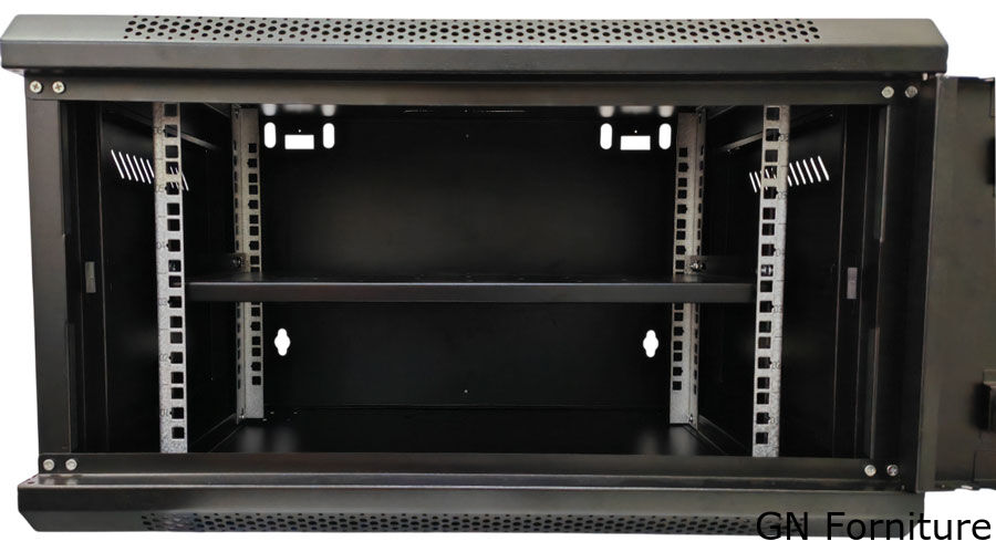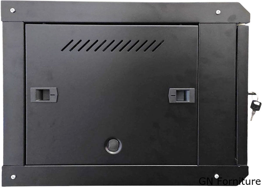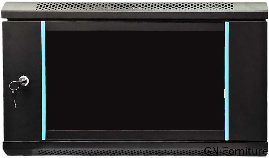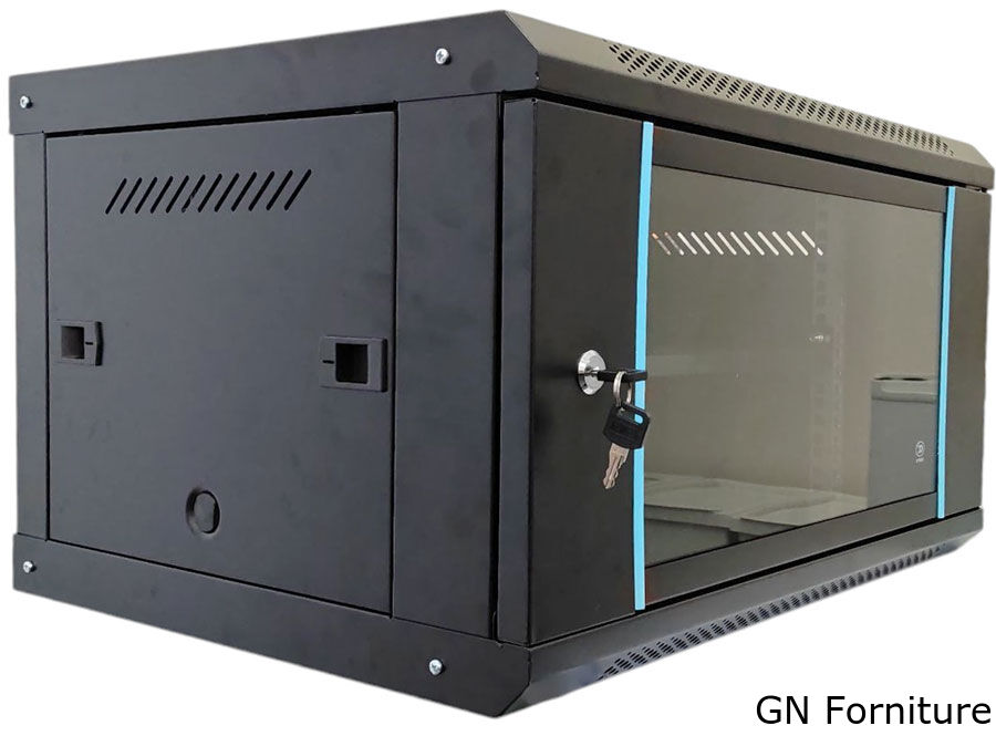 Armadio rack da parete da 6 unità (6U), ideale per l’alloggiamento ordinato e sicuro di dispositivi di rete, server, switch, router, DVR e apparati IT. Design compatto, robusto e ventilato, con porta frontale in vetro temperato e chiusura con chiave.