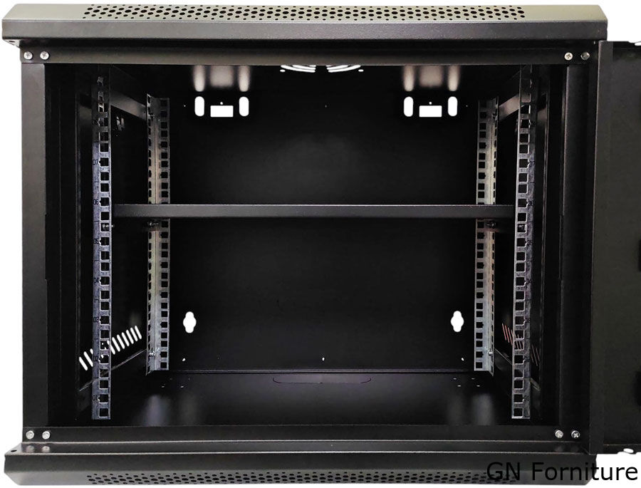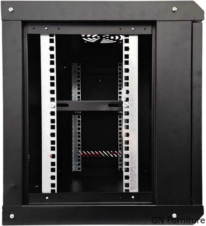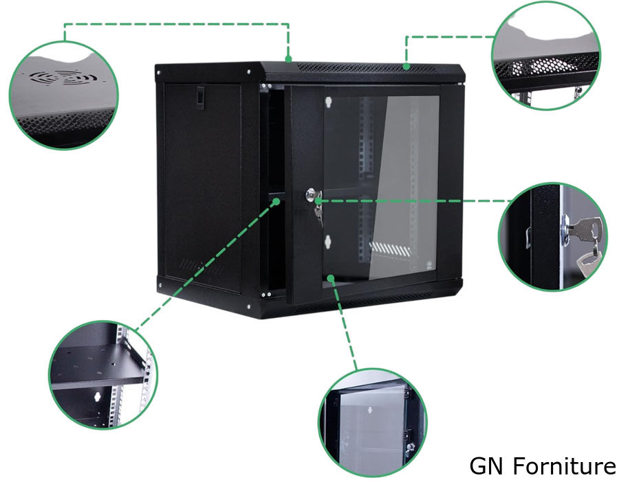 Armadio rack da parete da 9 unità (9U), ideale per l’alloggiamento ordinato e sicuro di dispositivi di rete, server, switch, router, DVR e apparati IT. Design compatto, robusto e ventilato, con porta frontale in vetro temperato e chiusura con chiave.