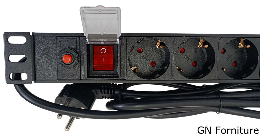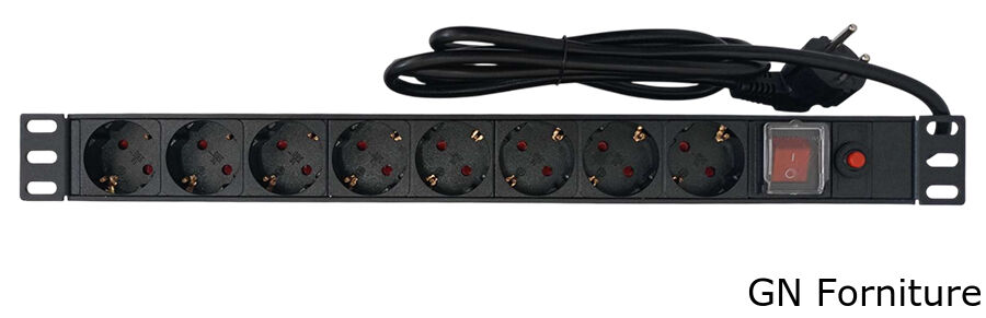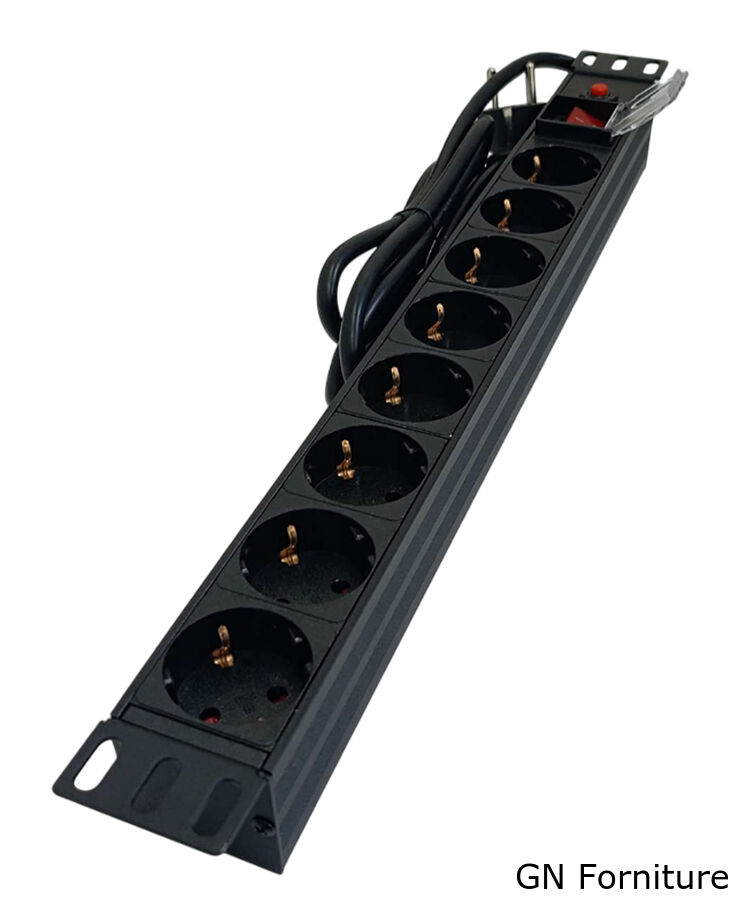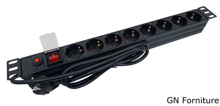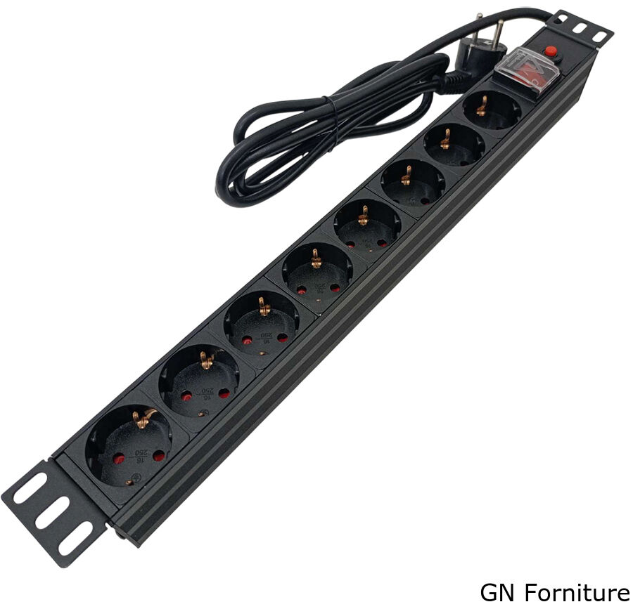 Multipresa professionale dotata di 8 prese Schuko, progettata per il montaggio in armadi rack da 19 pollici. Ideale per l'alimentazione ordinata e sicura di dispositivi elettronici e informatici.