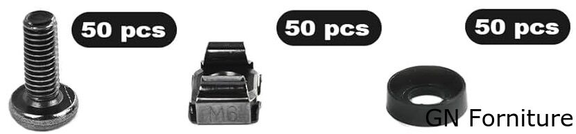 Confezione da 50 viti, 50 rondelle e 50 dadi in gabbia, colore viti: nero.