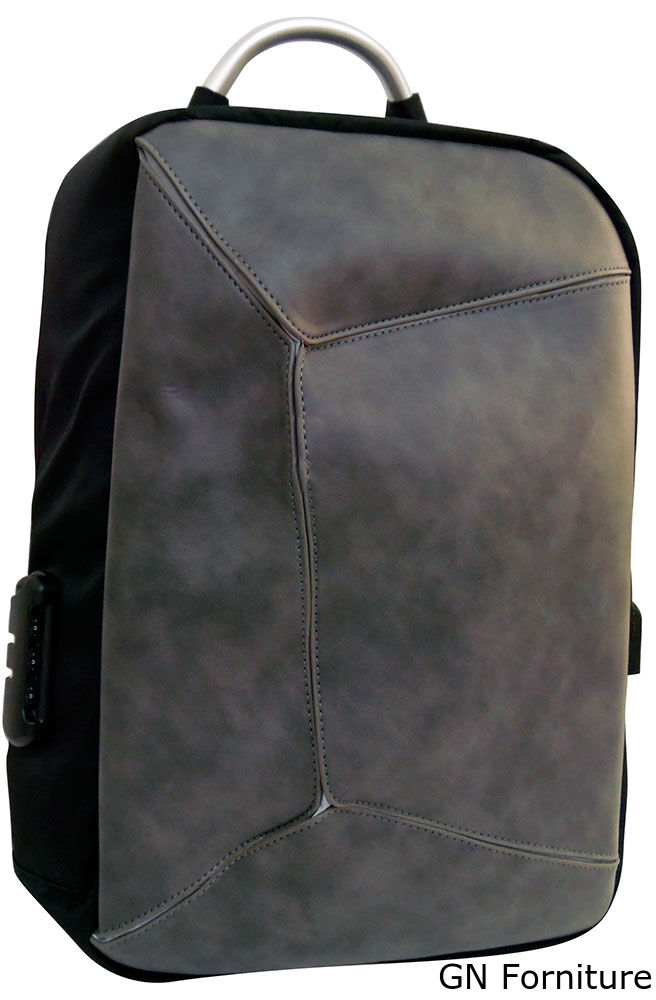 Zaino multifunzione antifurto imbottito con combinazione USB grigio-nero