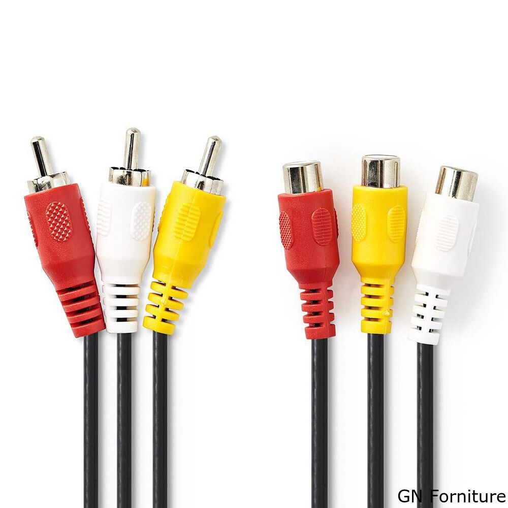 Cavo Video Composito 3x RCA maschio-3x RCA femmina 2m Nero