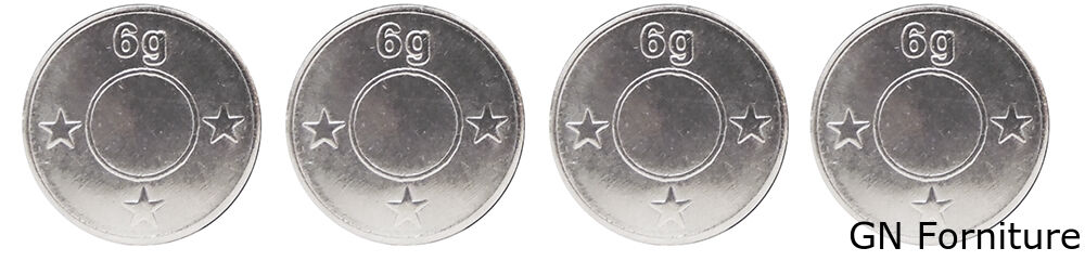 Quattro pesi identici tra loro hanno massa pari a 6 grammi ciascuno.