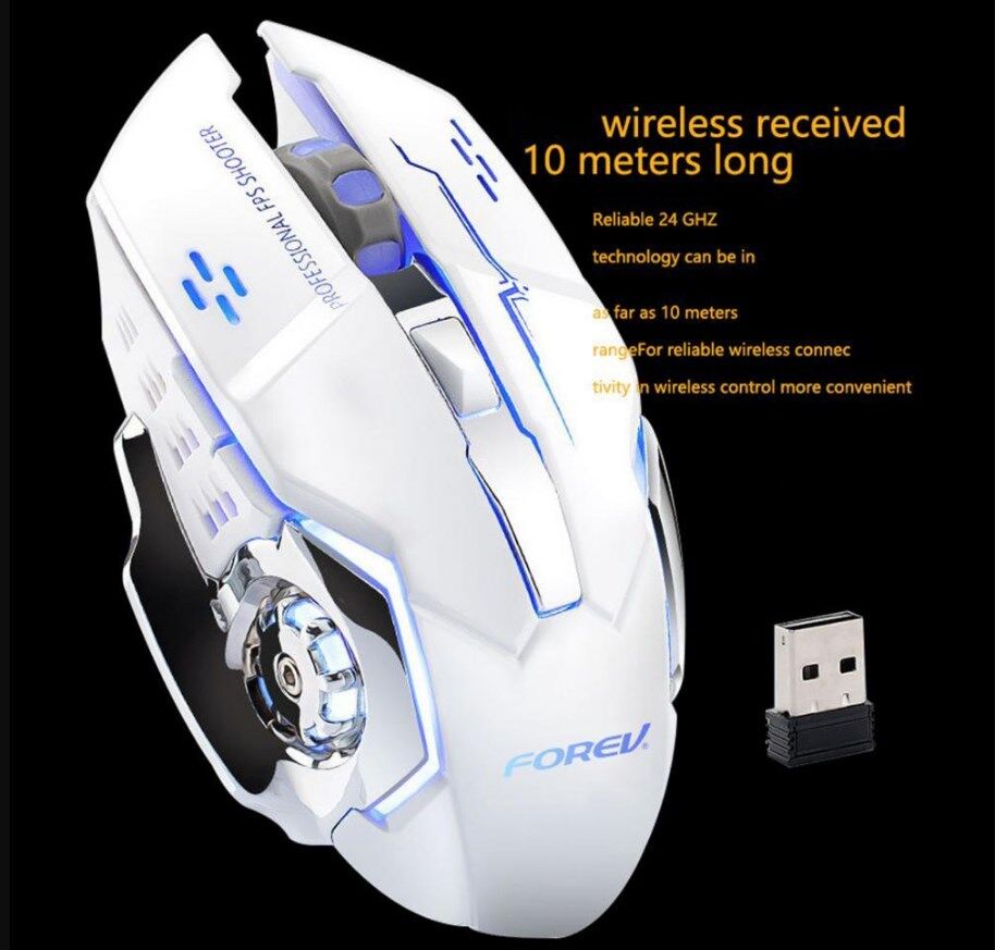 Mouse da gaming LED wireless con batteria ricaricabile incorporata bianco FV-W502