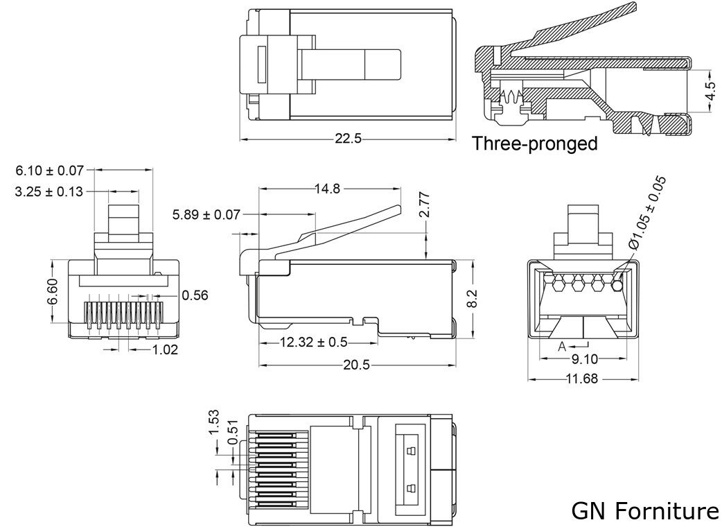 - Spina CAT 6 con contatti placcati in oro da 15μ per una trasmissione ottimale di segnali elettrici o ottici