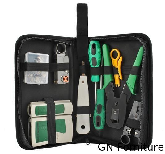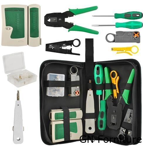 Il kit include un tester per cavi, una pinza a crimpare, un dispositivo push-in, plug RJ45, spelafili, cacciavite piatto e a croce, nonché strumenti per tagliare i cavi. Il tutto consente di rilevare e ripristinare qualsiasi tipo di danno ed è un must per ogni installatore di rete.