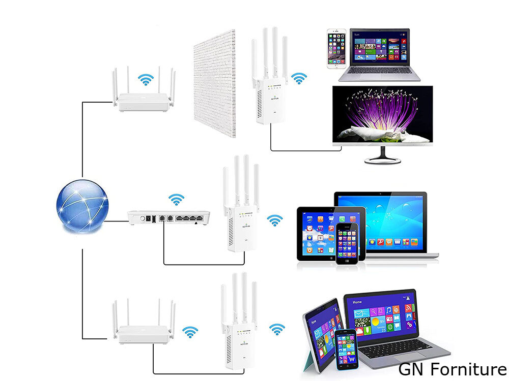 L'amplificatore è stato dotato di 4 antenne Garantiscono un'eccellente trasmissione e ricezione del segnale di rete Il prodotto può funzionare in varie modalità, a seconda delle singole esigenze. Inoltre, ha un protocollo DHCP, che consente ai computer connessi alla rete di scaricare l'indirizzo IP, la maschera di sottorete, l'indirizzo gateway e il server DNC. Il ripetitore è inoltre dotato di tecnologia WPS, che consente di connettersi alla rete senza immettere una password, anche se la rete è protetta.