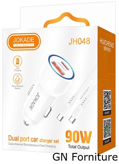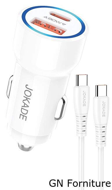 Alimentatore caricabatterie da auto USB/Type-c con cavo Type-C 90W 20V/3A bianco JH048