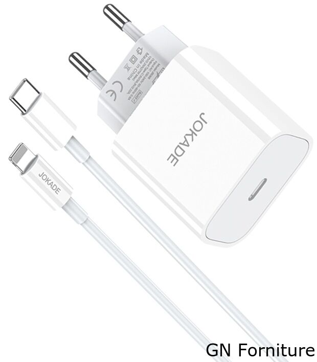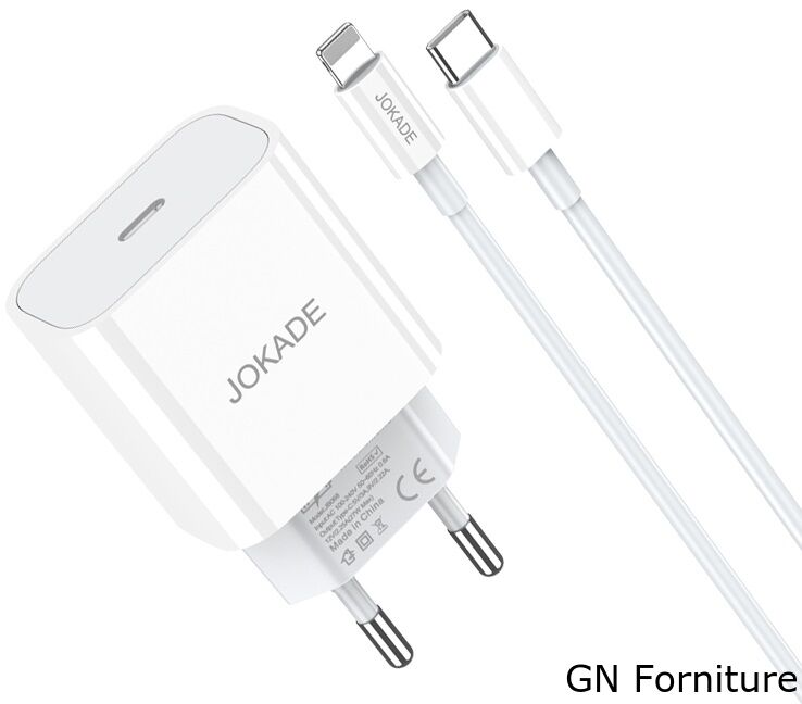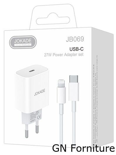 Caricabatterie con cavo USB tipo C / Lightning ricarica rapida 3A 27W bianco JB069