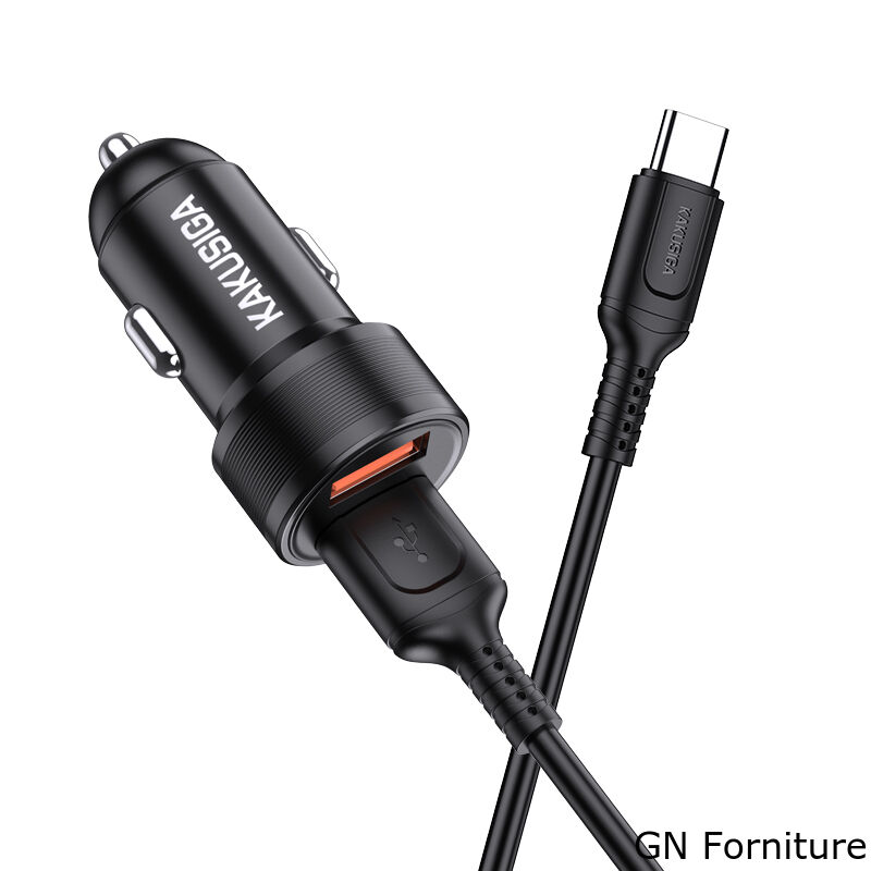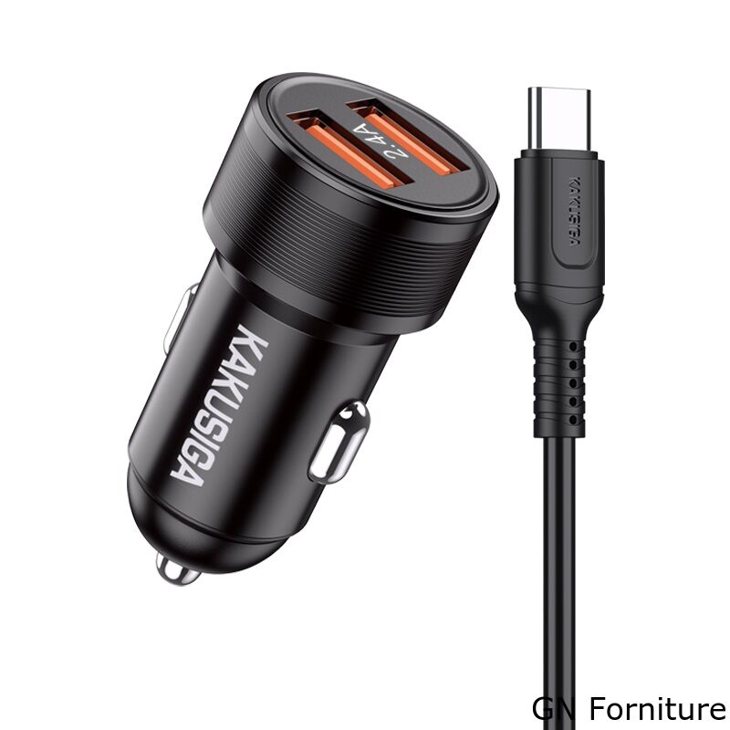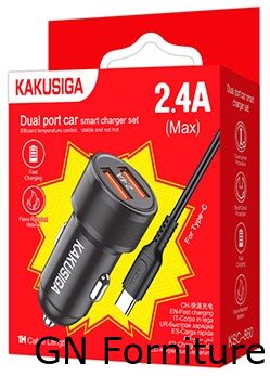 Caricabatterie da auto ricarica rapida 2xUSB 5V 2.4A con cavo type C KSC-860