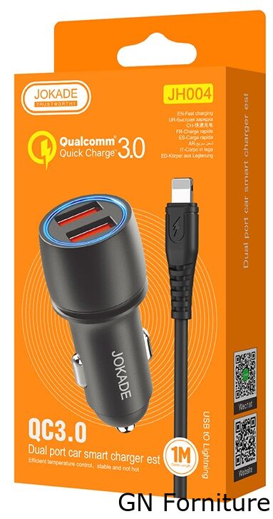 Caricabatterie per auto 2xUSB con cavo Lightning JH004