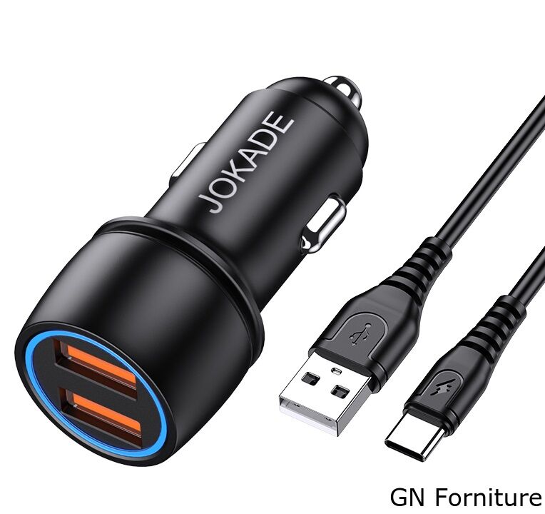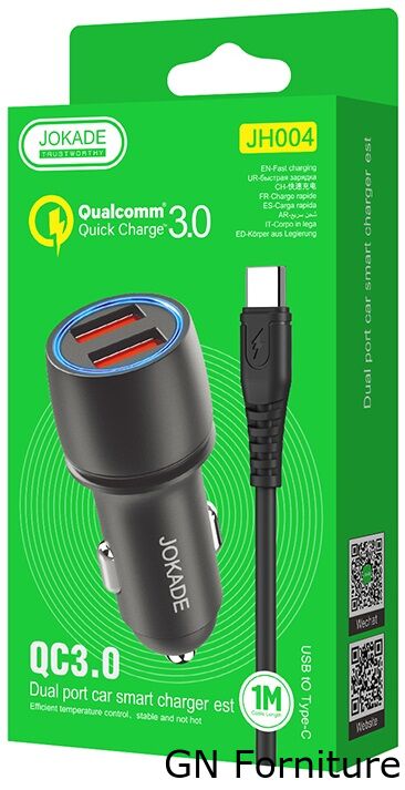 Caricabatterie per auto 2xUSB con cavo USB type C JH004