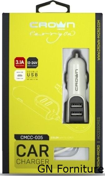 Caricabatterie per auto con due porte USB 3.1A e cavo micro USB Crown Micro