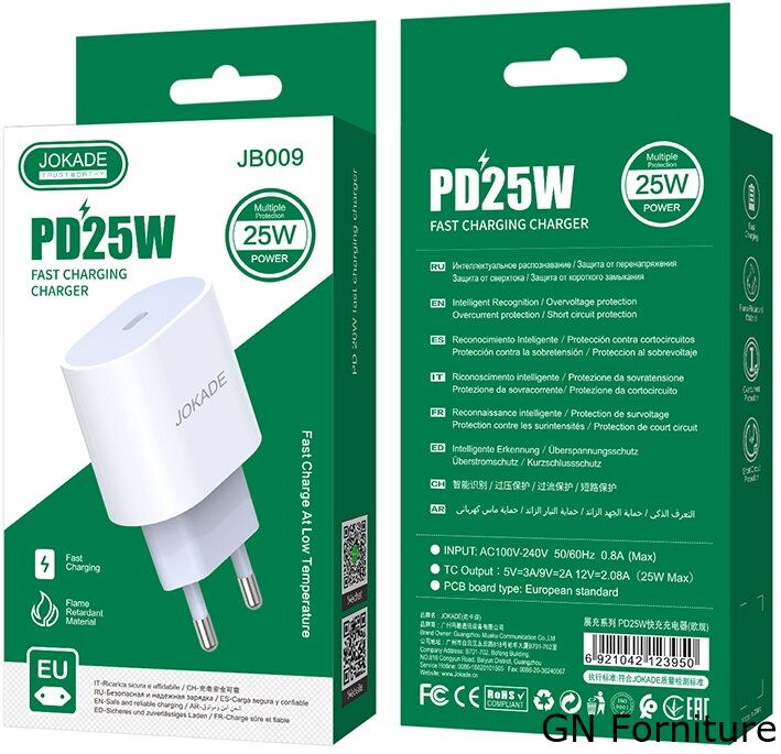 Caricabatterie USB Type C 2A PD25W bianco JB009
