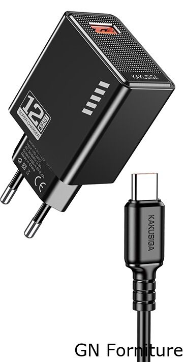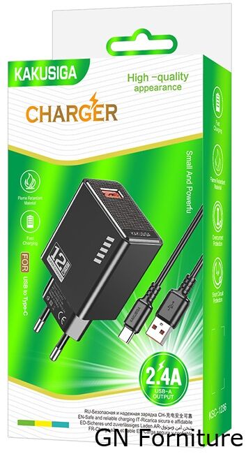 Caricatore USB Type-C USB 5V/2.4A 12W nero KSC-1236