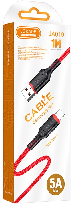 Cavo per ricarica e sincronizzazione type C 1m 5A rosso JA019
