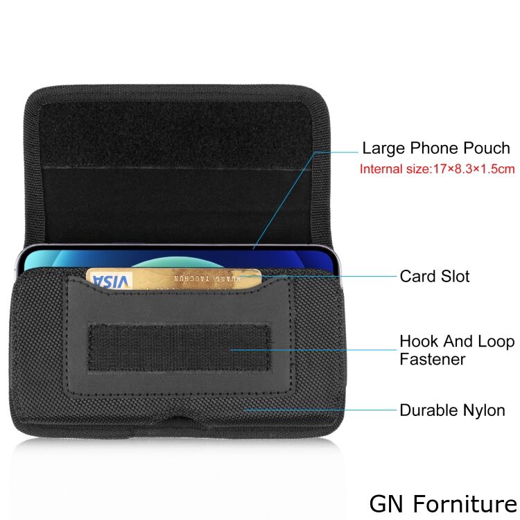 Materiali Premium per la Massima Protezione: Realizzata in resistente nylon oxford e dotata di una morbida imbottitura interna, questa fondina orizzontale offre un'eccellente protezione contro graffi e urti. L'ampio spazio interno (170 x 83 x 15 mm) è perfetto anche per telefoni che montano custodie protettive spesse, ibride o Defender.