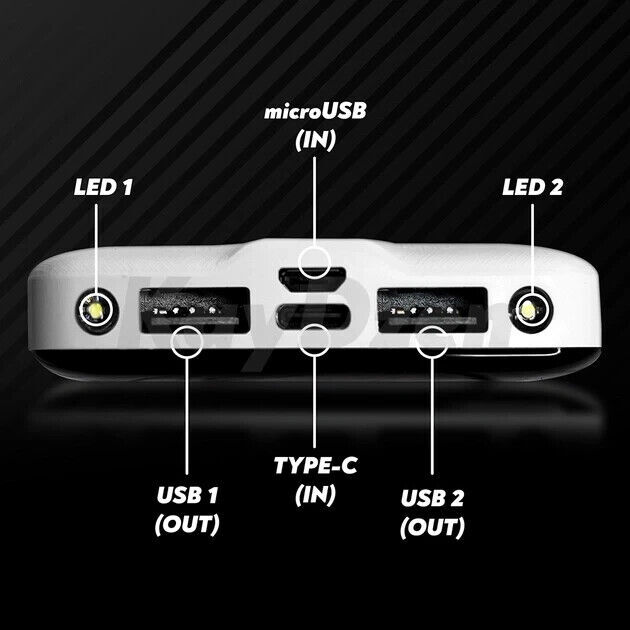 - Porte di ingresso per ricarica powerbank: 1x USB microUSB - 1x USB type C