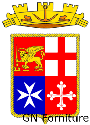 Bandiera della marina militare stabilita con decreto del 9 novembre 1947 e alzata per la prima volta il 30 successivo. Al centro compare lo stemma araldico dell'arma, che si differenzia da quello sull'insegna mercantile per la presenza della corona cosiddetta "marittima", turrita e rostrata, e per lo stemma di Venezia, con il leone armato di spada, poggiante sul libro chiuso e sulle onde del mare, e accompagnato da tre fiammelle (o tulipani) di incerto significato. Tale stemma deriva da un modello proposto nel 1939 e approvato dal re nel 1941, sul quale era sovrapposto al centro anche lo scudo di Savoia tra due fasci. Con Foglio d'Ordine n. 52 dello Stato Maggiore della Marina Militare in data 26 dicembre 2012 sono stati indrodotti miglioramenti nel disegno dello stemma (e conseguentemente delle bandiere) della marina.