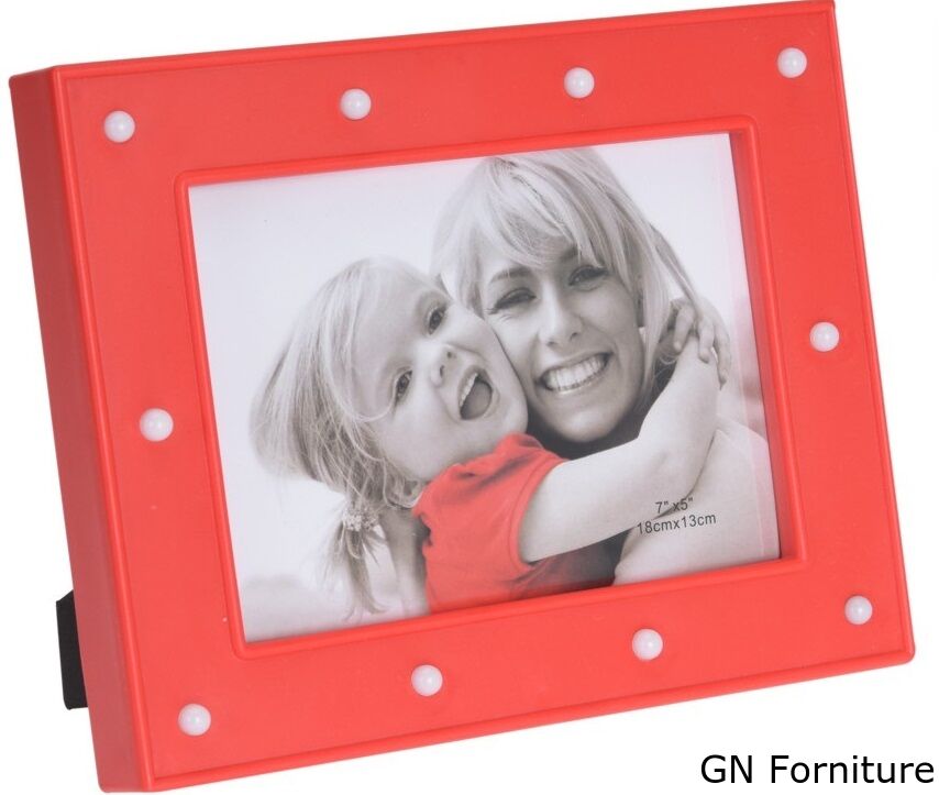 Cornice per foto con luci LED disponibile in 3 colori: nero, rosso, bianco.