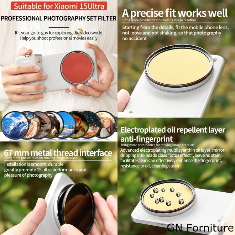 Filtro fotografico ND regolabile da 67 mm, progettato per Xiaomi 15 Ultra e ideale per migliorare la qualità degli scatti in condizioni di forte luminosità. Grazie alla riduzione della luce regolabile, permette di controllare meglio esposizione, apertura e tempo di scatto, offrendo maggiore libertà creativa in foto e video.