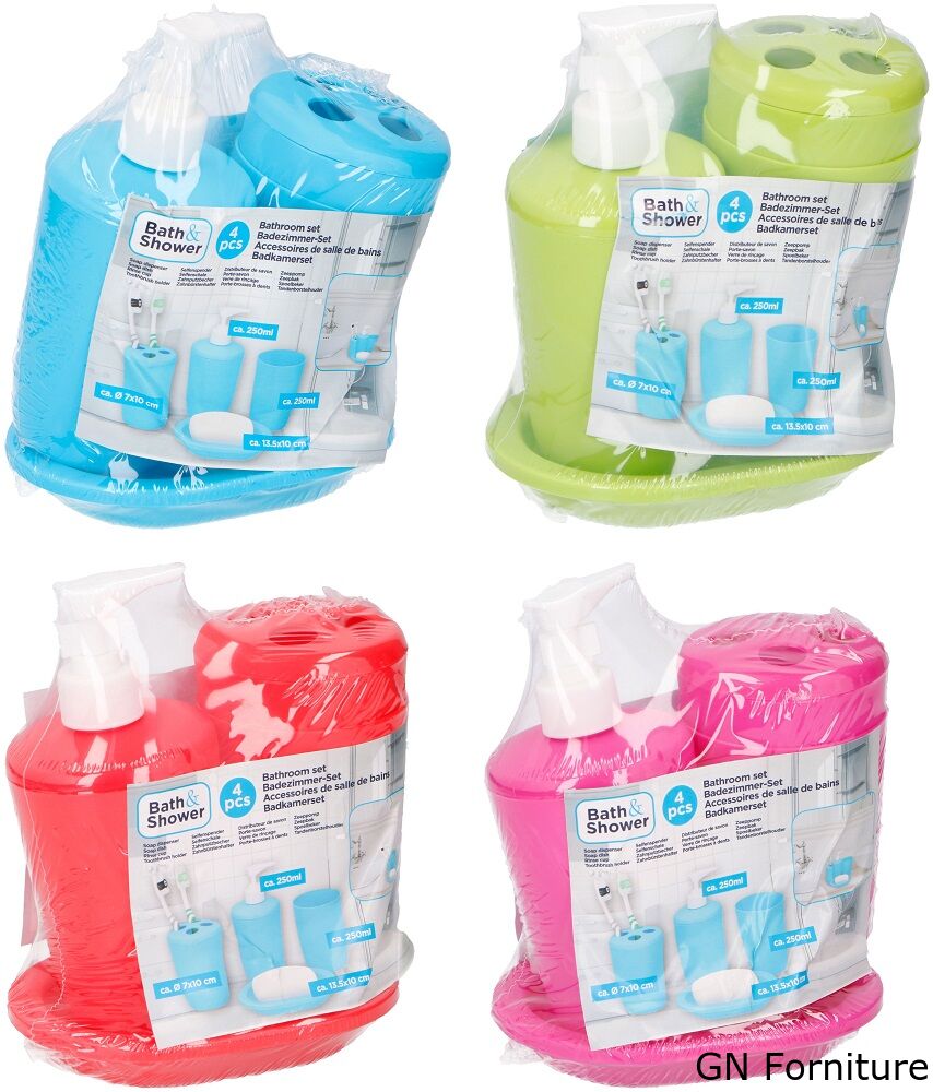 Set da bagno composto da 4 pezzi, varie colorazioni disponibili.