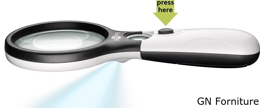 - Lente grande: Ingrandimento 1,75x con 2 LED, ø 75 mm
