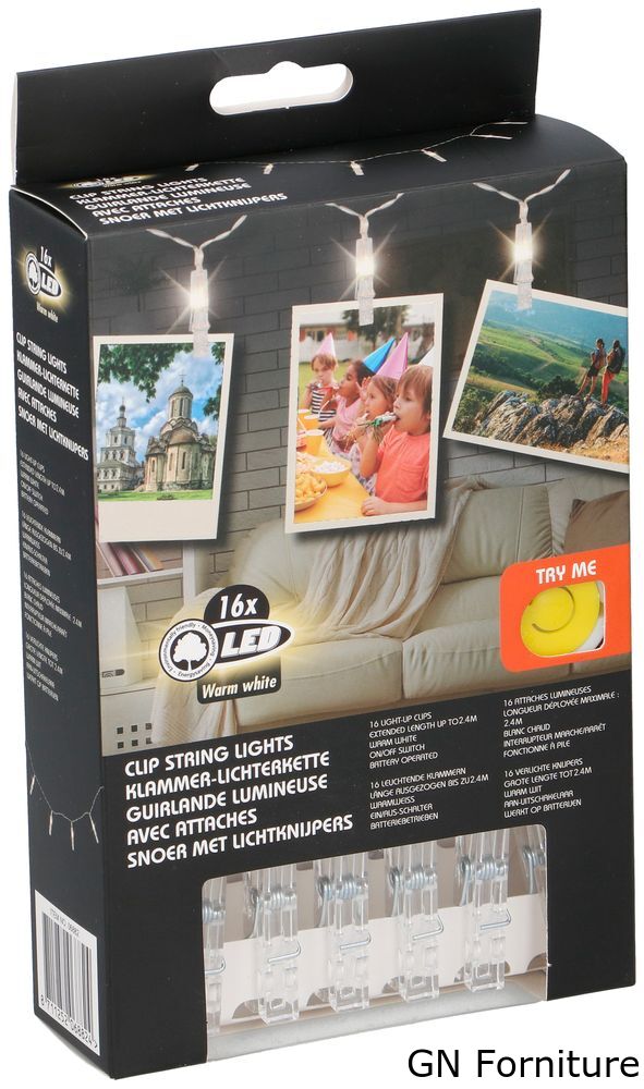 Crea una meravigliosa atmosfera e valorizza le tue foto con questa fantastica catena luminosa. Questa catena luminosa a batteria è dotata di 16 luci a led con molletta che ti permette di appendere le tue fotografie preferite in modo da creare un complemento d'arredo particolare e di grande effetto.