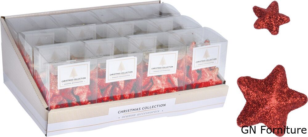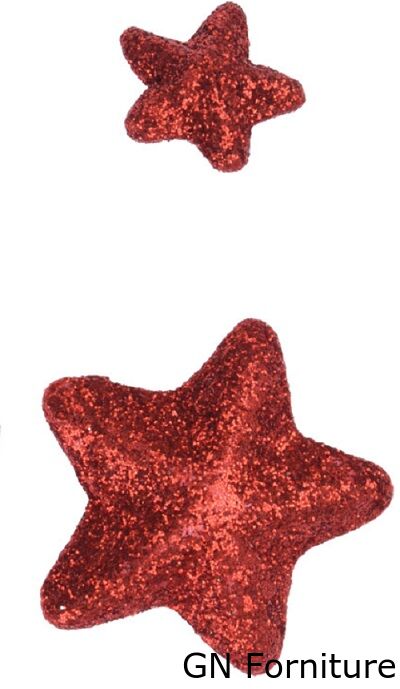 Le stelle sono realizzate in polistirolo e decorate con glitter rosso.